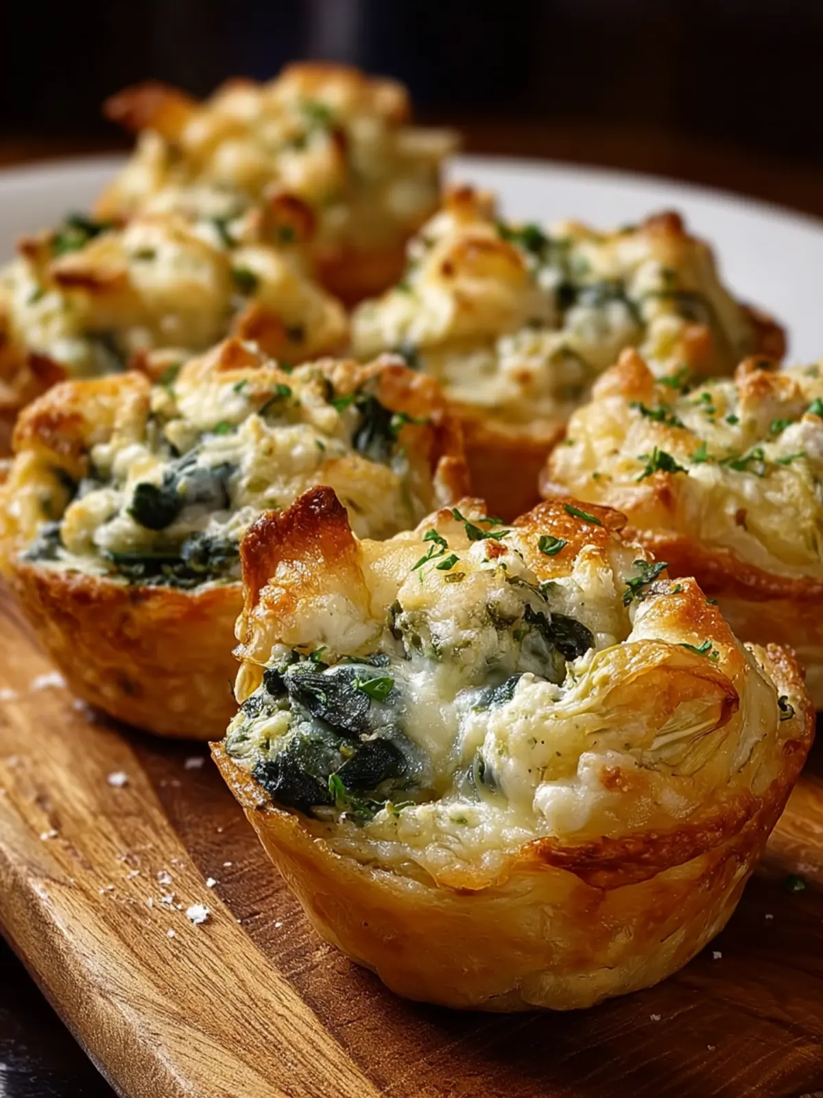 Delicious and creamy artichoke spinach bites wrapped in golden puff pastry.
