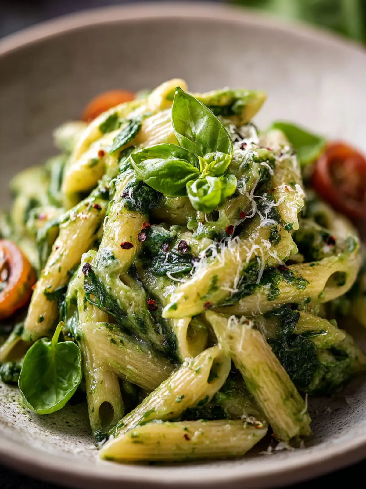 Don’t forget to sprinkle your creamy spinach pasta with freshly grated Parmesan cheese and a handful of toasted pine nuts or walnuts for an extra crunch. A dash of red pepper flakes can add a delightful kick, perfect for those who enjoy a bit of heat.