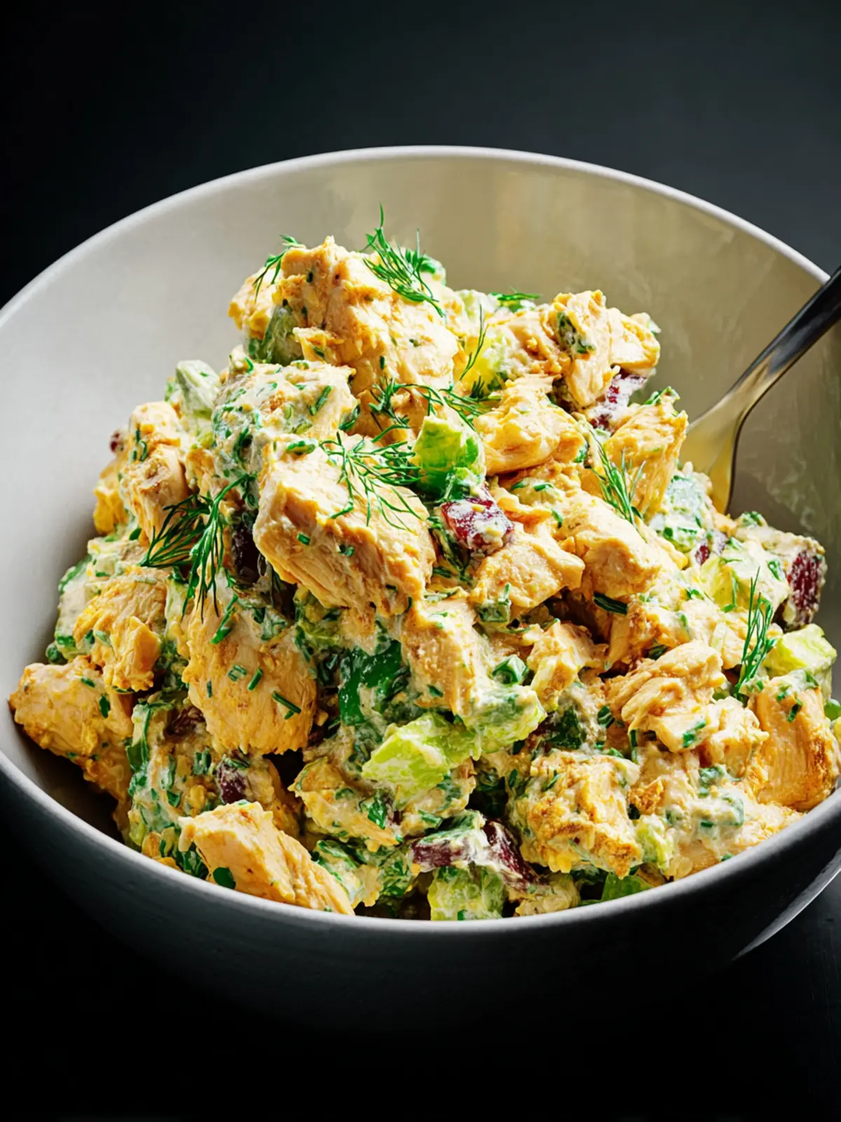 Celery and Apples: I love adding diced celery for crunch and apples for a sweet note. They contrast beautifully with the creaminess and add freshness to the dish.