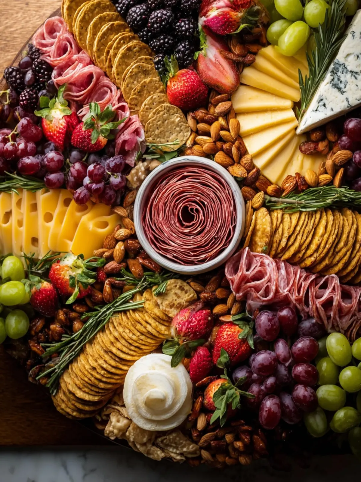- A Balanced Arrangement: Start with larger items as anchors—like cheeses and meats—then fill in gaps with smaller items like olives and crackers. This creates a visually appealing layout.