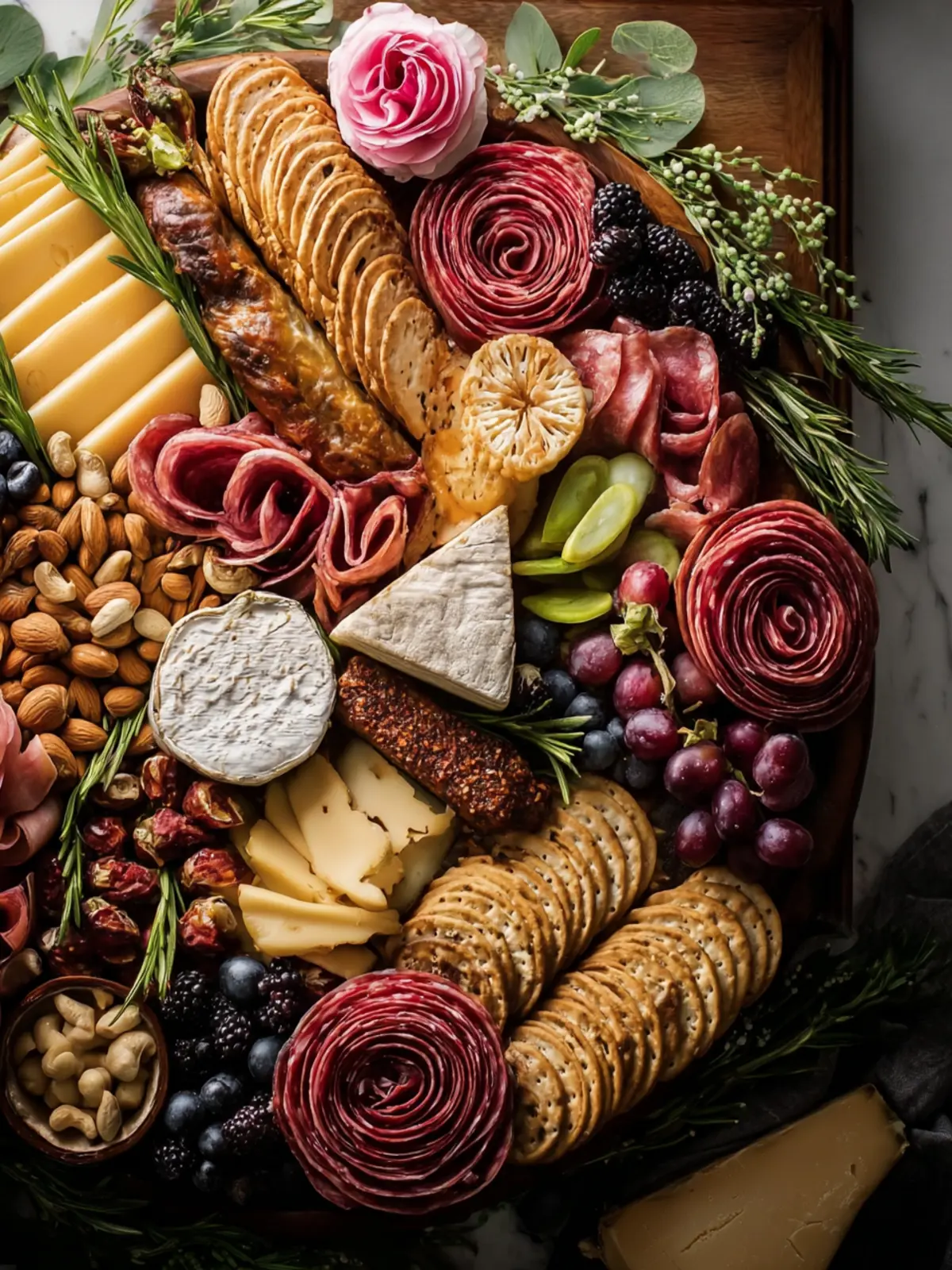 Nuts such as almonds or walnuts can add satisfying crunch, while a mix of olives introduces a briny, savory element. They complement the meats and cheeses beautifully.