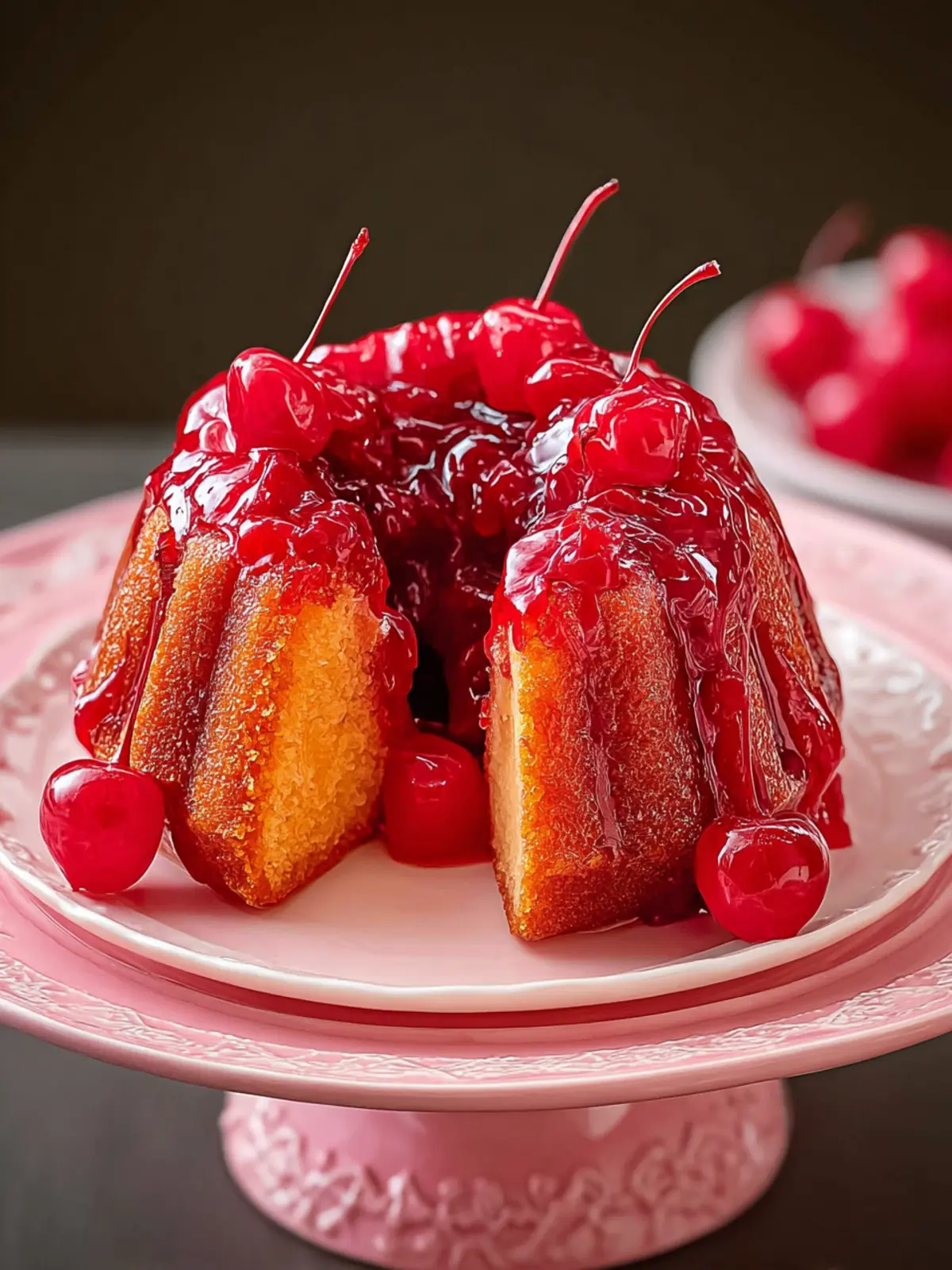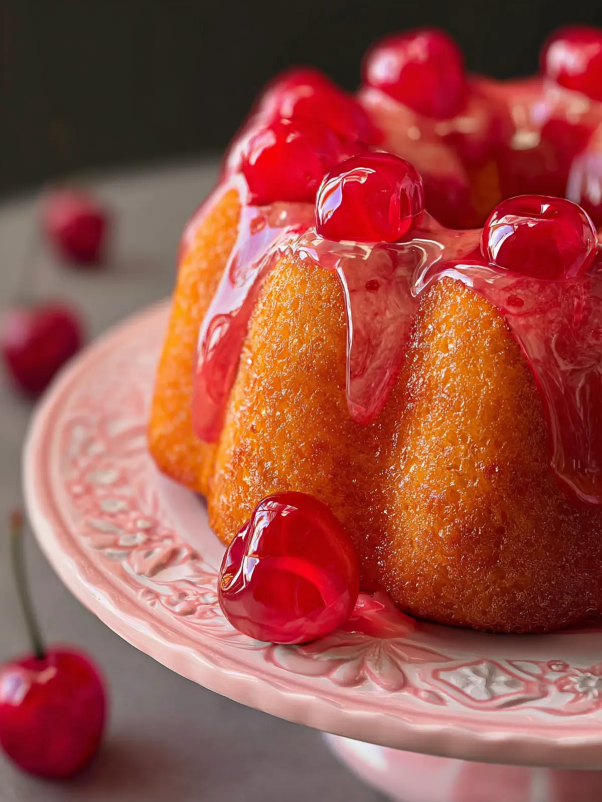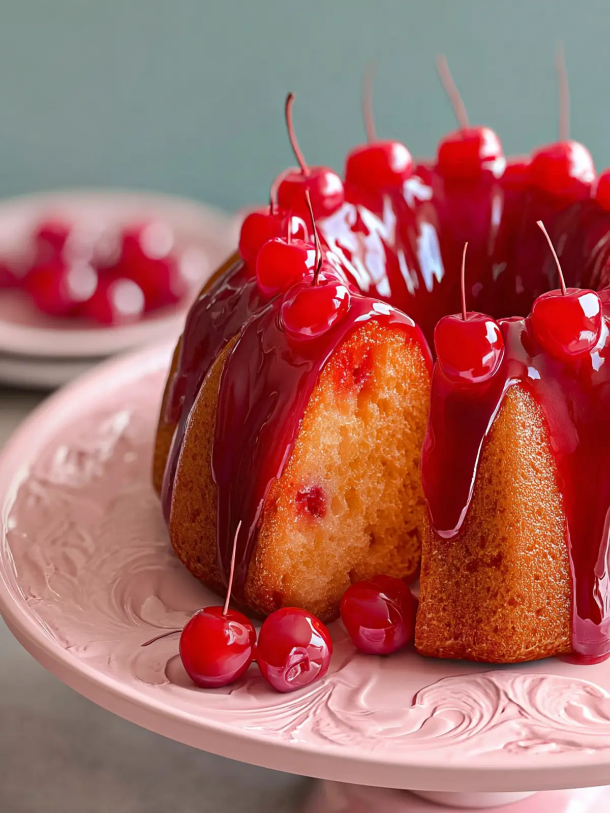 This delightful maraschino cherry bundt cake is moist and flavorful, perfect for any occasion.